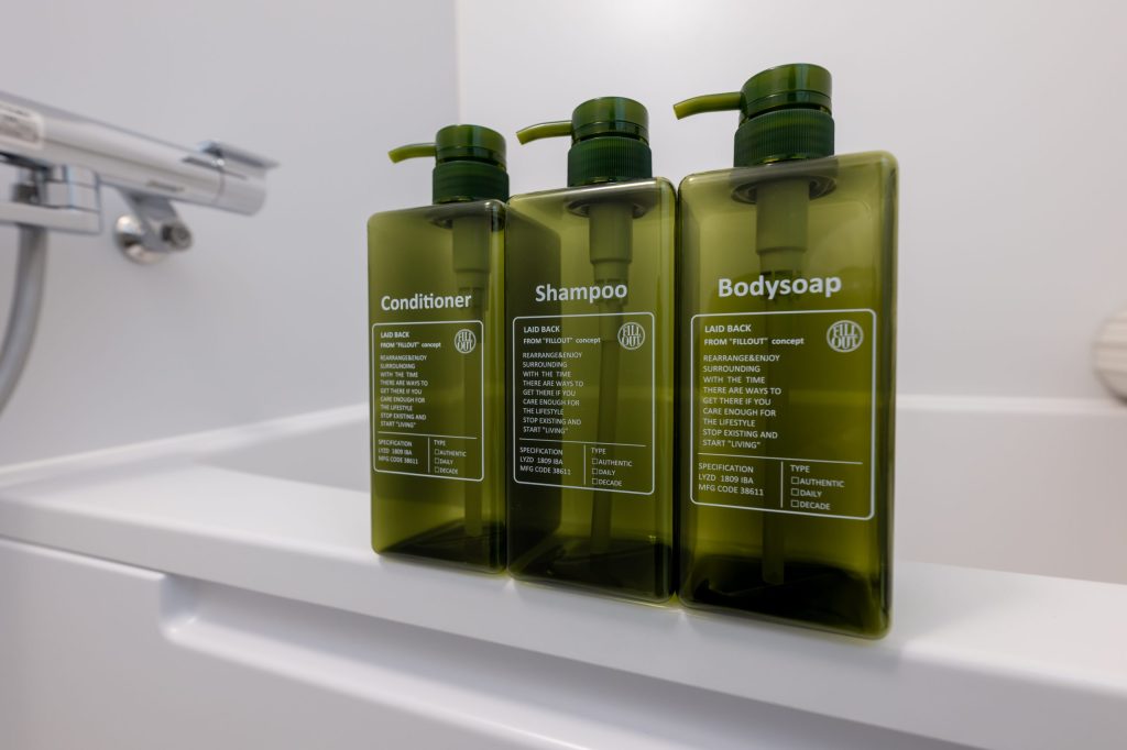 お風呂には、シャンプー、リンス、ボディーソープなどを完備。