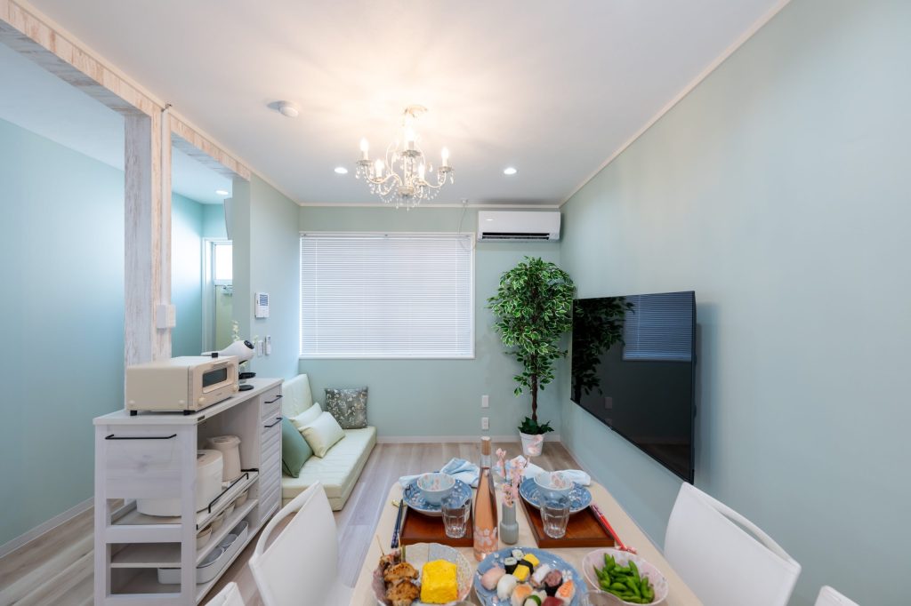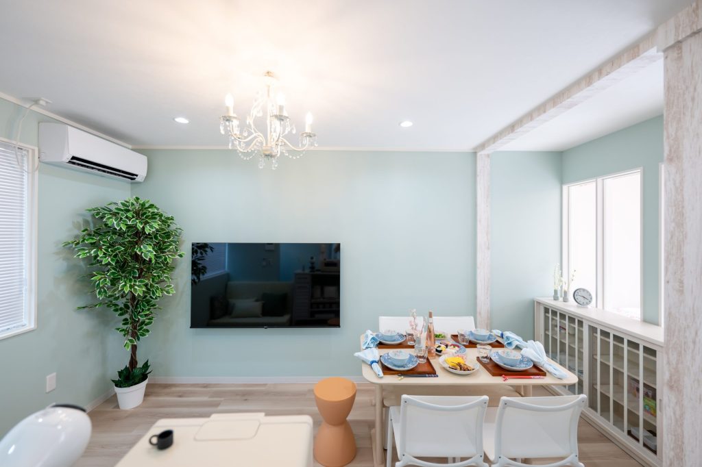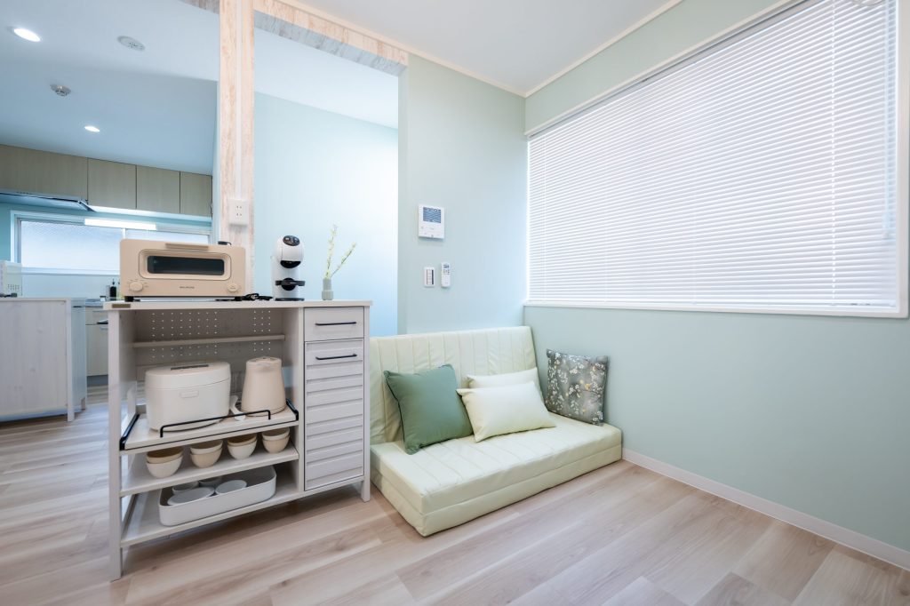 パステルカラーの色合いが優しいくつろぎ空間。