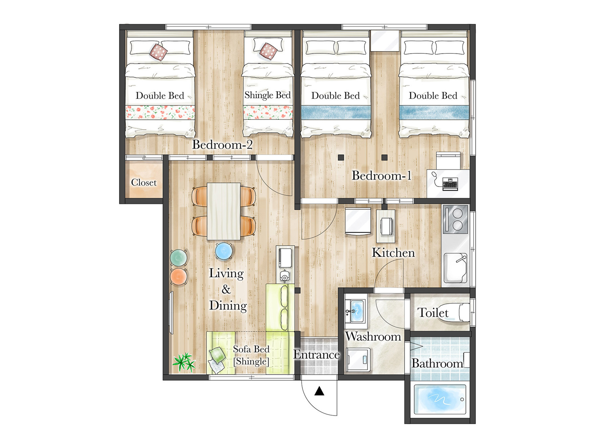 ダブルベッド×3 / シングルベッド×1